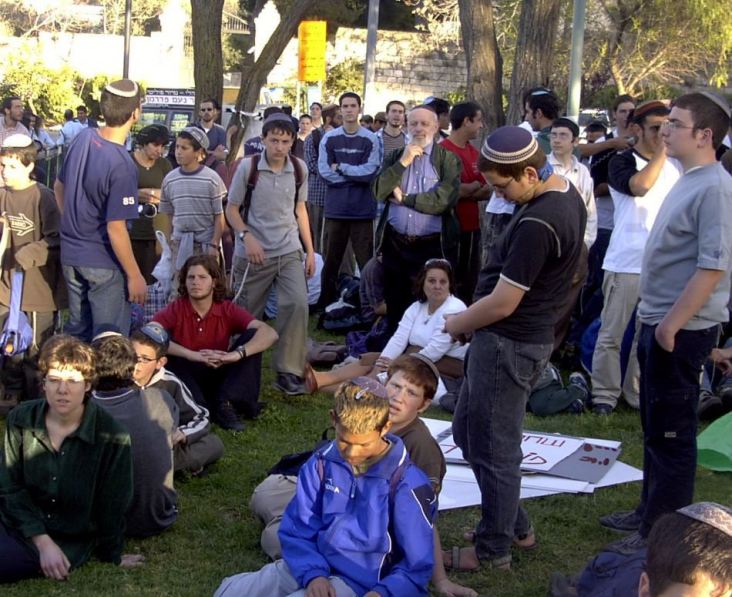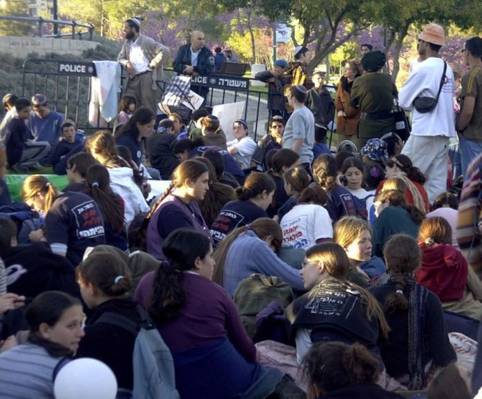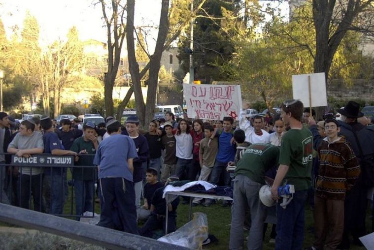 בהפגנה מול
