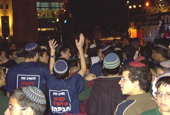 שרון 16.11.03 עצרת תפילה וזעקה בכתל ומשם צעדה לבנייני האומה והפגנה מול כנס איחוד הקהילות והארגונים מהומה