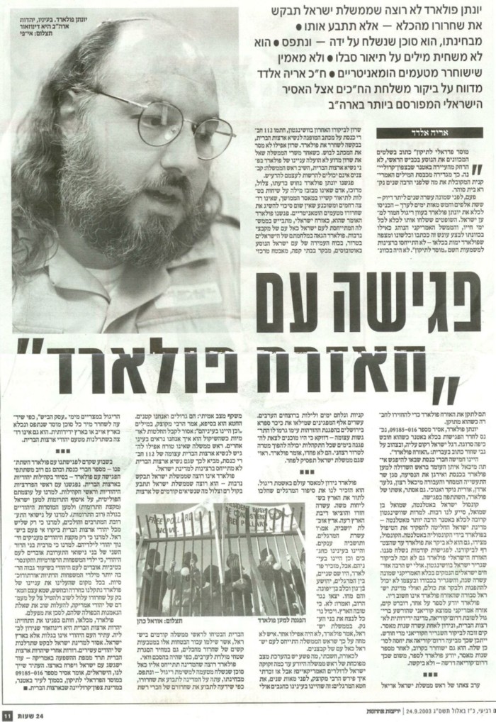 אמריקה. ולי היה ברור שלא פולארד זקוק לתיקון אלא מדינת ישראל וממשלתה.תיקון שיביא לכך שנפסיק להתייחס לעצמנו כאל קבצנים, כאל מסכנים. שניישם הלכה למעשה את עצמאותנו. את זכותנו לארץ ישראל. את זכותנו להגן על אזרחנו בכל מקום שהם נמצאים.תיקון שיגרום לנו למלא את חובתנו לשחרר את הסוכן הישראלי יונתן פולארד הכלוא זה שמונה עשרה שנים.